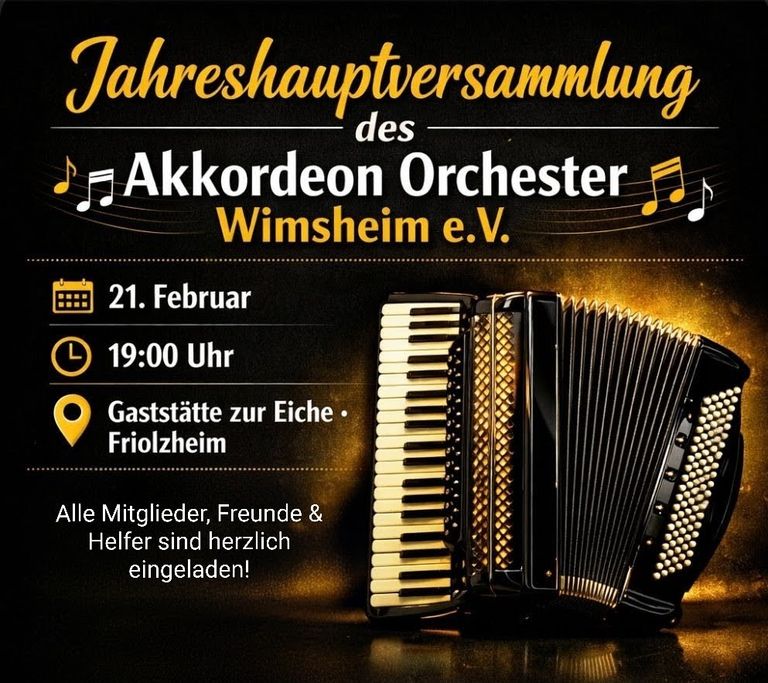 - Jahreshauptversammlung am 21.02.2026 um 19 Uhr in der Gaststätte zur Eiche in Friolzheim